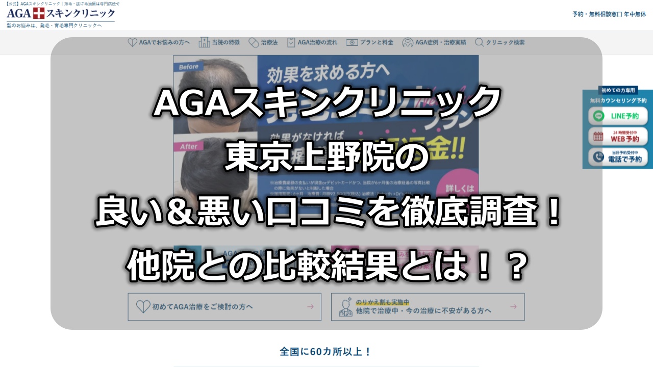 AGAスキンクリニック東京上野院の良い&悪い口コミを徹底調査!他院との比較結果とは!?